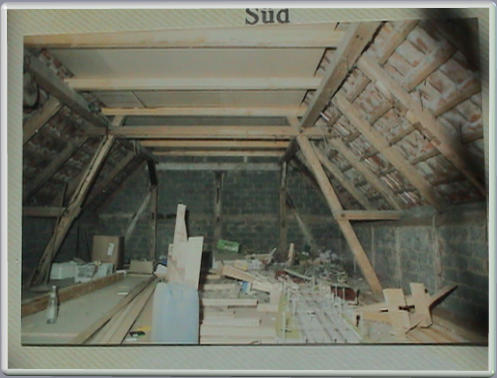 Südseite ohne Isolierung des Daches. Im Hintergrund